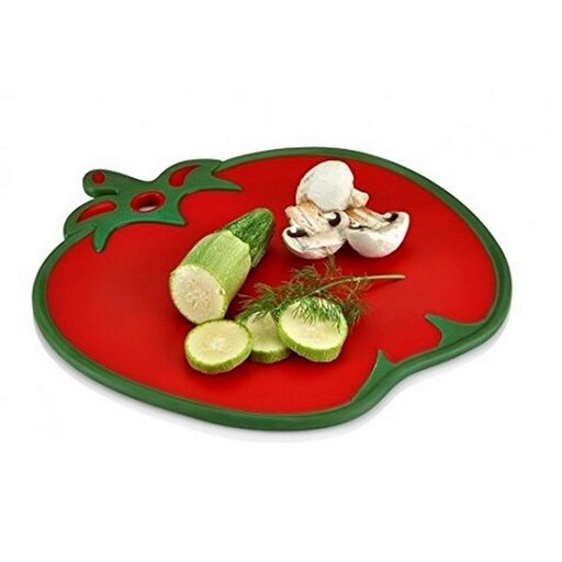 Весела, удобна и много стабилна пластмасова дъска за рязане във формата на домат.
