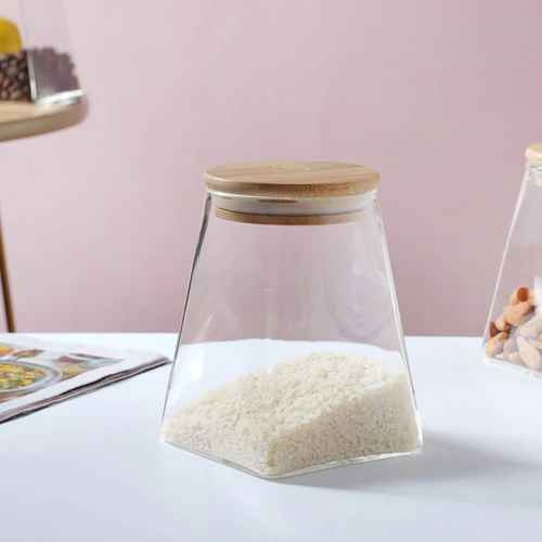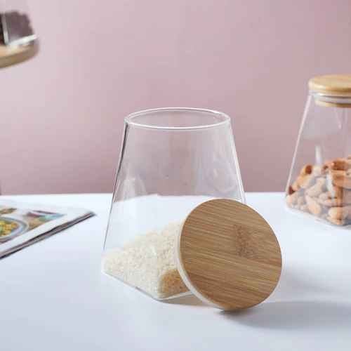 Изработен от устойчиво прозрачно стъкло с подходяща дебелина и бамбукова капачка. Стилен и практичен, този стъклен буркан с бамбукова капачка е идеален за съхранение на различни сухи продукти в кухнята. Капачката прилепва плътно към отвора на буркана. Бурканът е подходящ за измиване в съдомиялна машина.