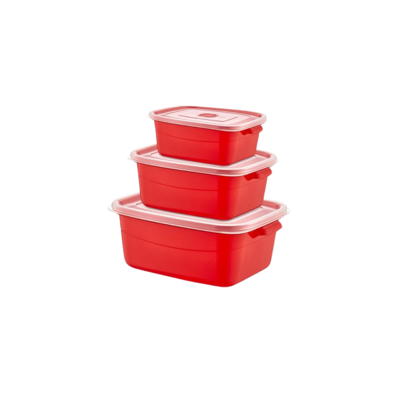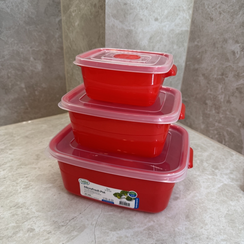 Сет от 3 броя пластмасови кутии с плътно затварящ се капак за използване в микровълнова фурна.