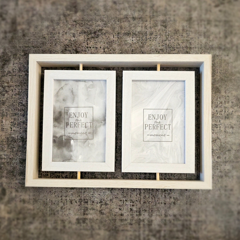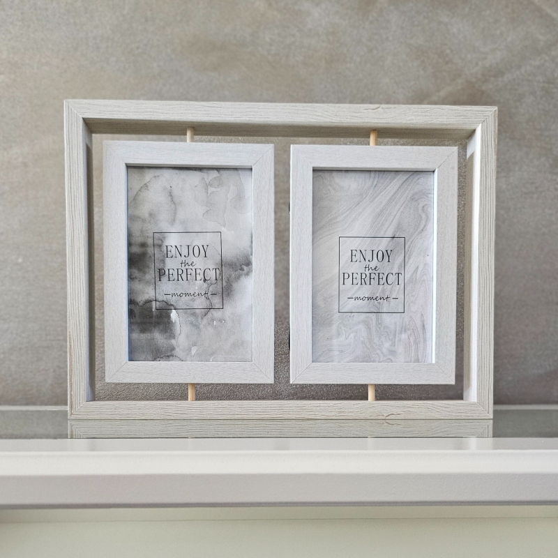 Представлява красива рамка с въртяща основа, в която могат да се поставят 2 снимки.