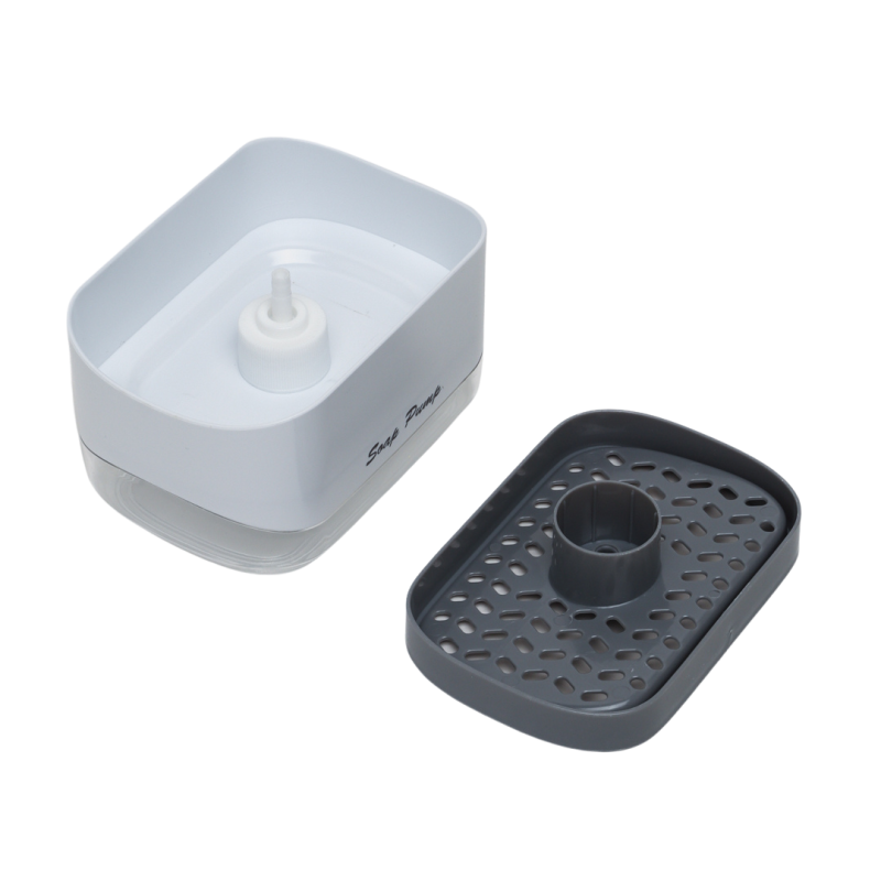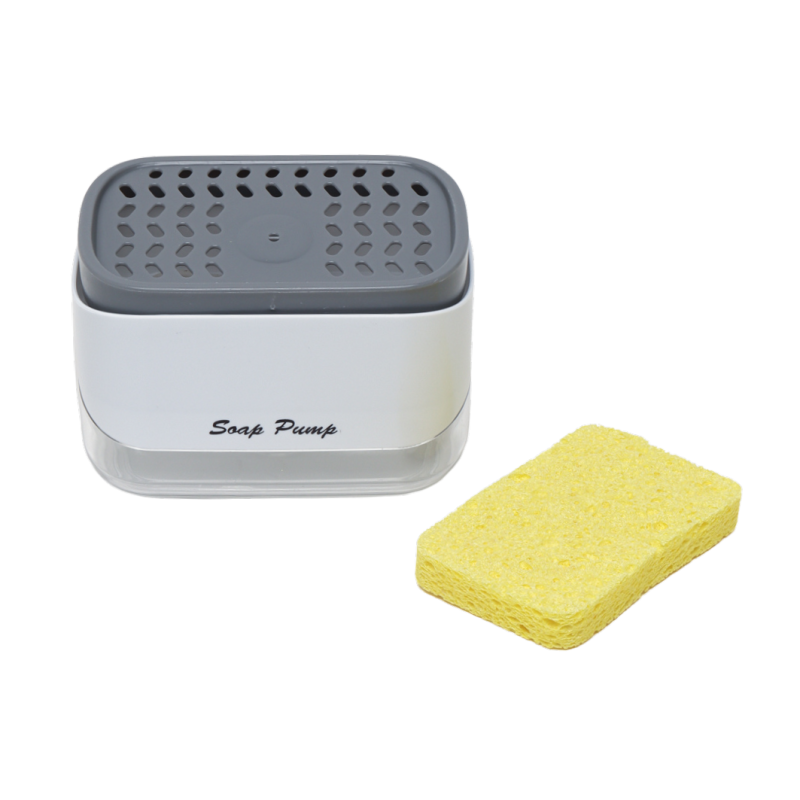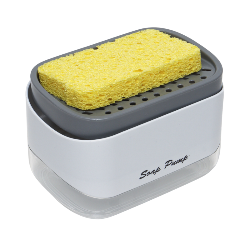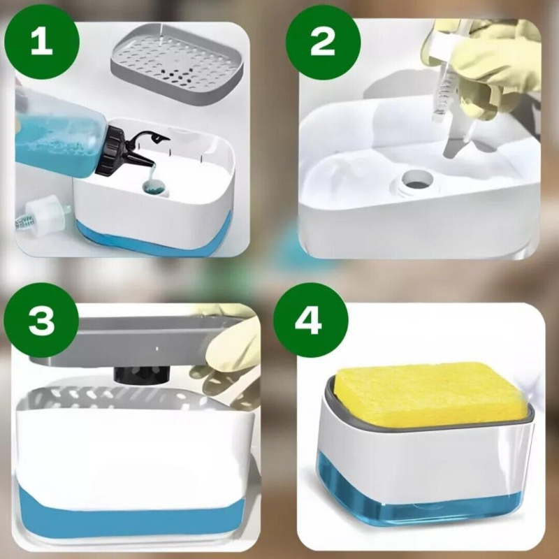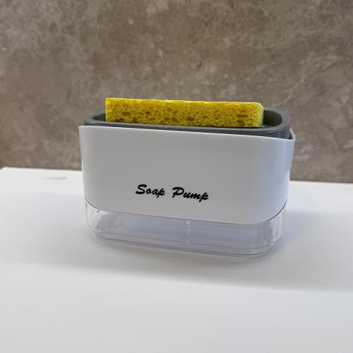 Дозатор с гъба се състои от контейнер,помпичка и поставка за гъба