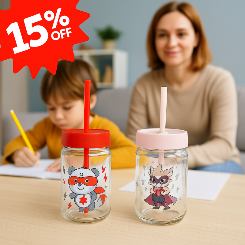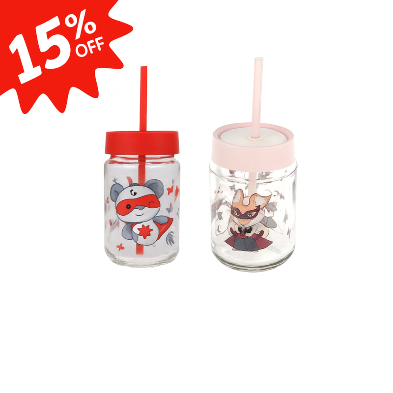 ✔ Материал: Стъкло с капак и сламка от пластмаса