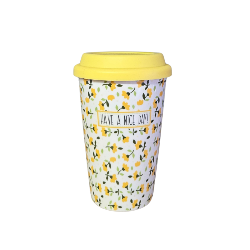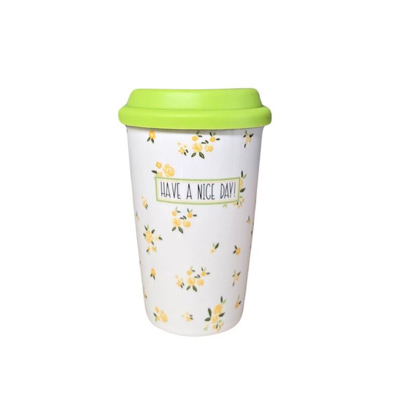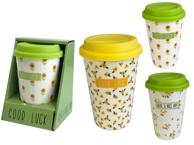 Порцеланова чаша със силиконов капак Flora е подходяща за употреба на топли и студени напитки.
