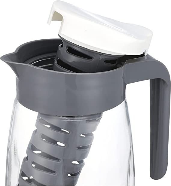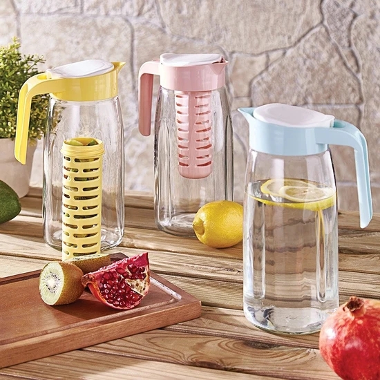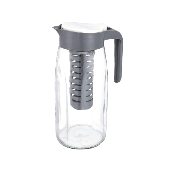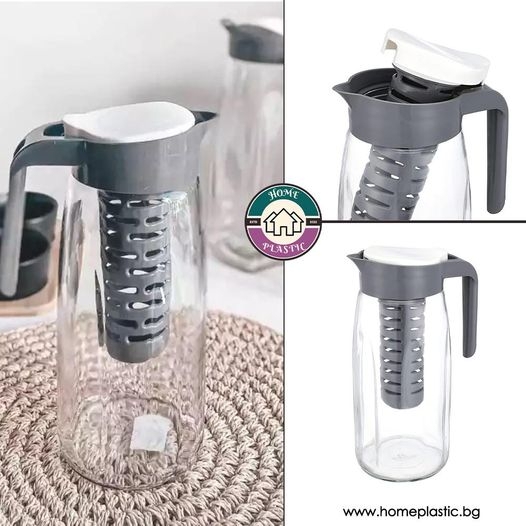 Основната част е изработена от прозрачно стъкло, а капака с цедка от пластмаса.