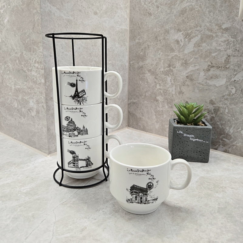 Начало КУХНЯ Комплект порцеланови чаши на стойка малки - модел 10946
