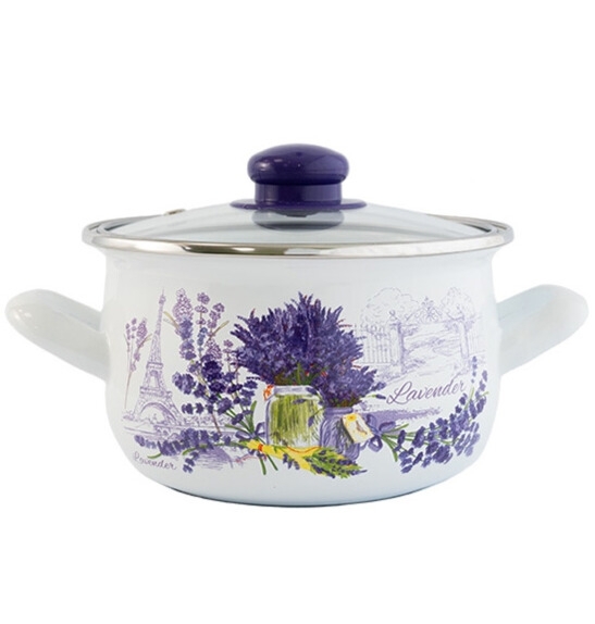 Тенджера емайл със стъклен капак Лавандула 6,2л