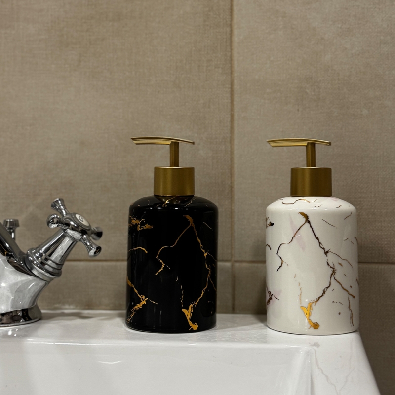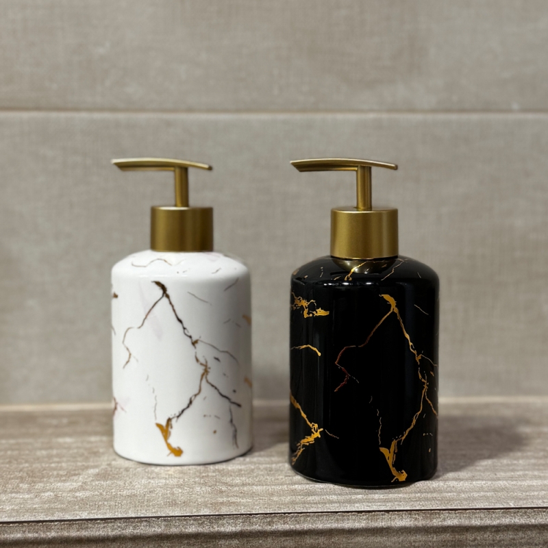 Дозатор за течен сапун "GoldLine" е стилен и модерен диспенсър за сапун, който впечатлява със своя изискан мраморен дизайн и елегантни златни линии.
