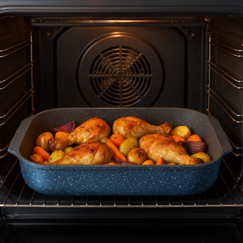 Може да бъде поставена във всякакъв вид готварски фурни.