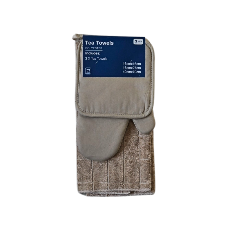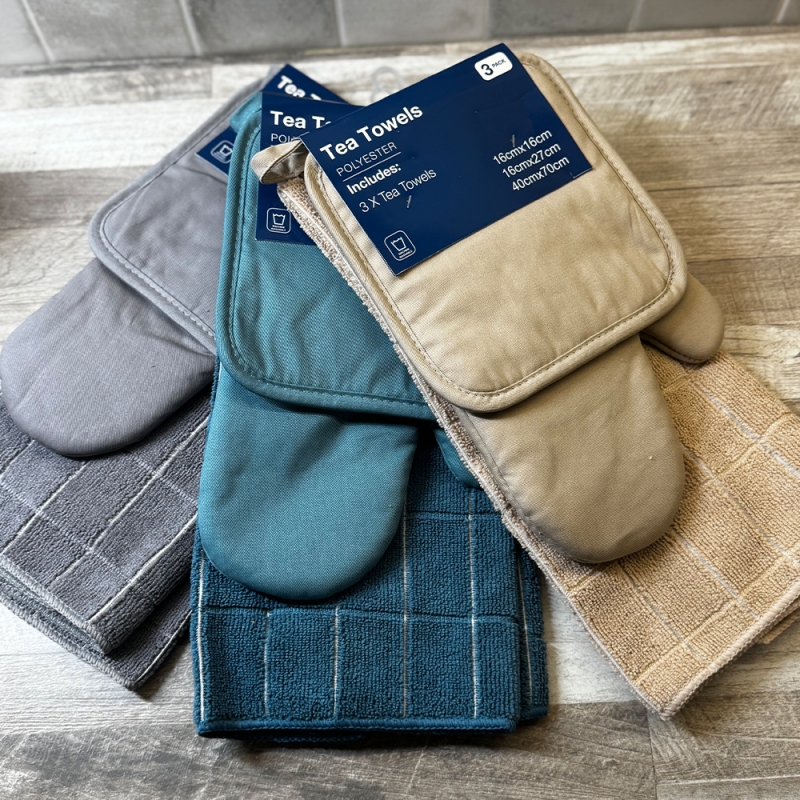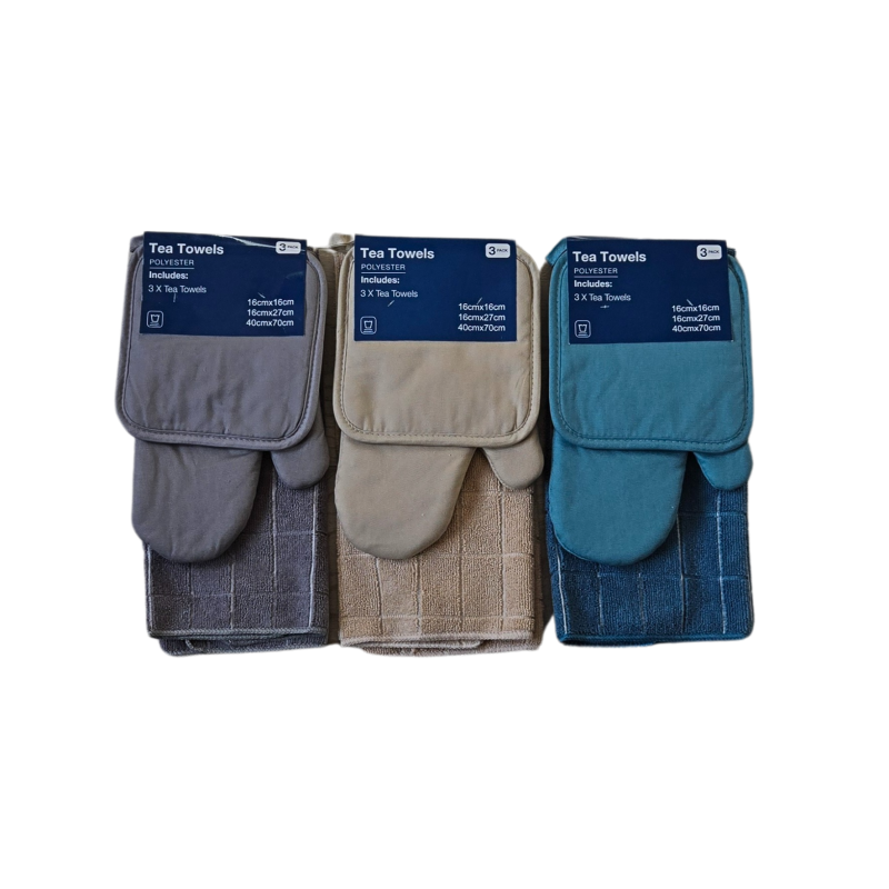 Защитете ръцете си и добавете стил в кухнята с нашия комплект TrioTowels , който включва квадратна подложка, ръкавица и чайна кърпа.