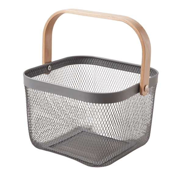 Кошница изработена от метал с прахово покритие за устойчивост на ръжда.
