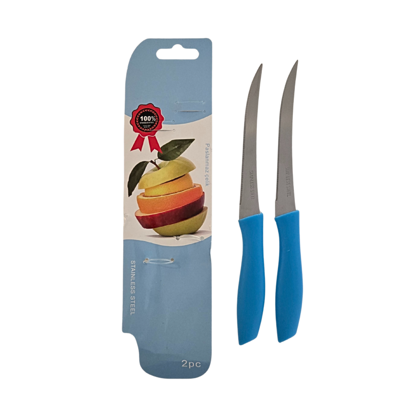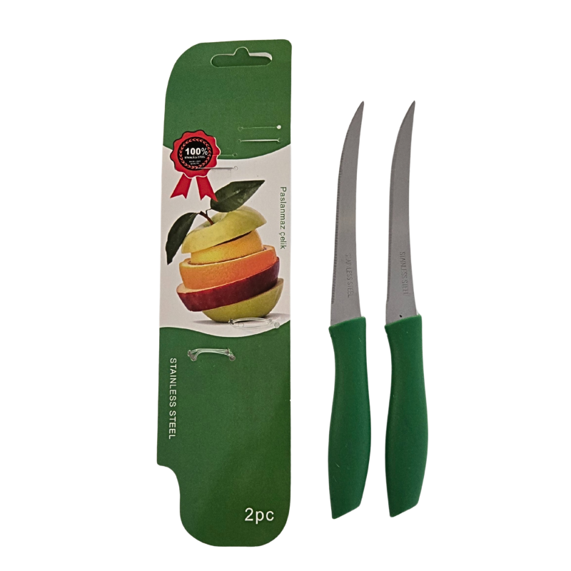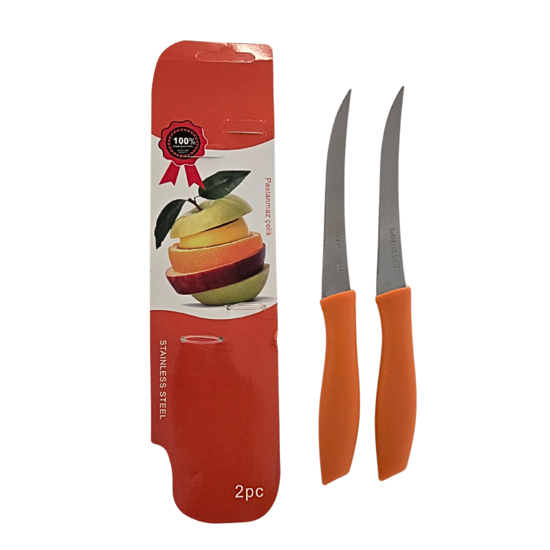 Практичен комплект от 2 ножа за лесно и прецизно рязане на плодове и зеленчуци.