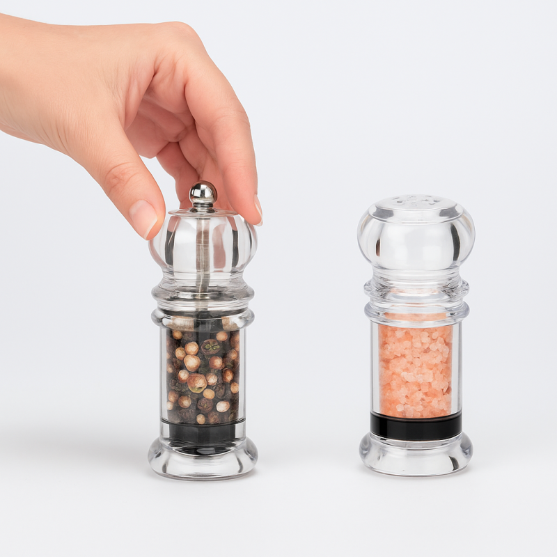 Стилен комплект от мелничка за пипер и солница, изработени от висококачествен прозрачен акрил.