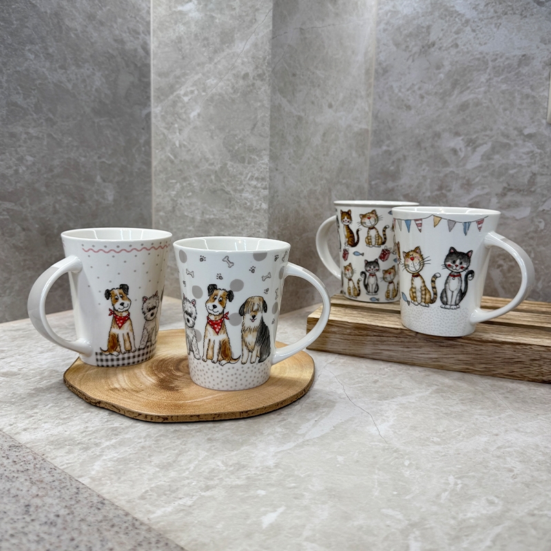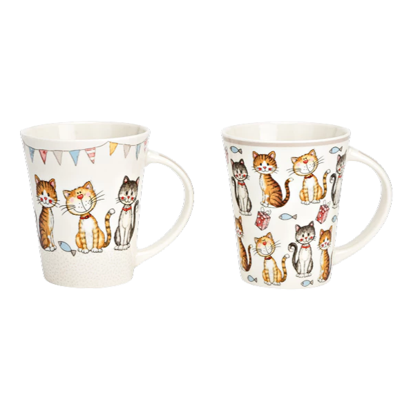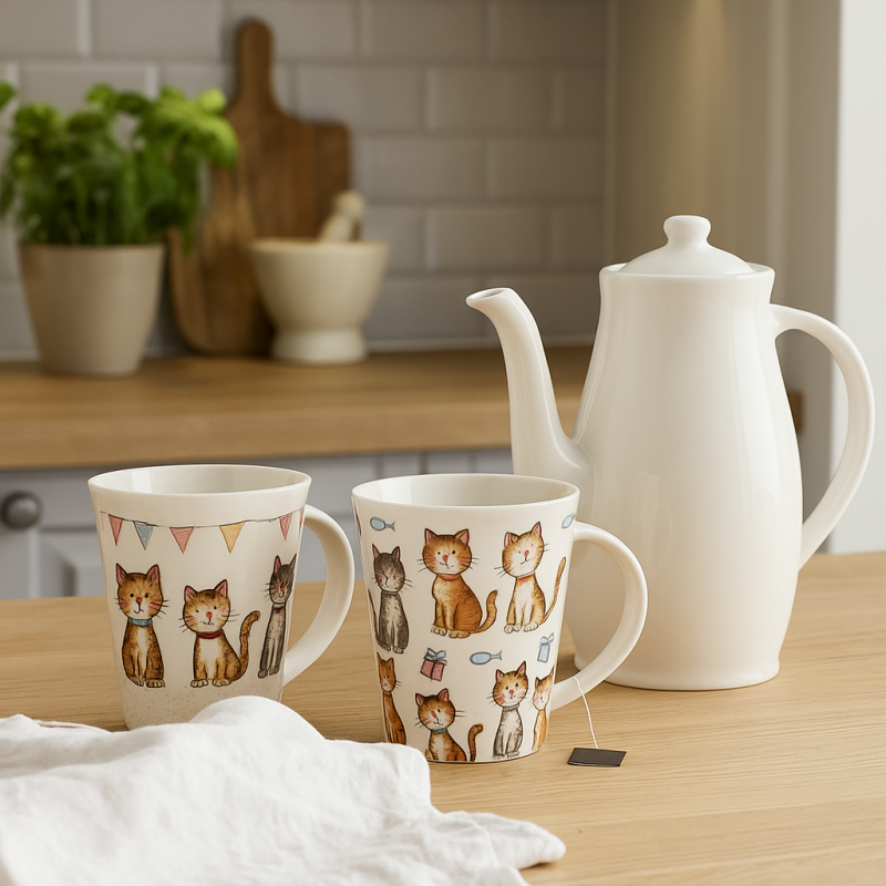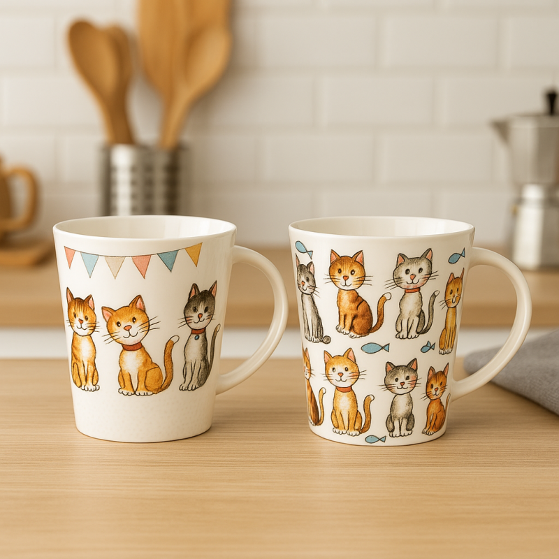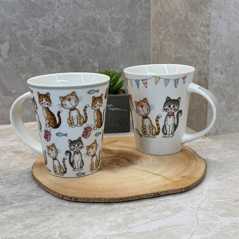 Добавете настроение към деня си с тази порцеланова чаша с весел и цветен дизайн на котки.