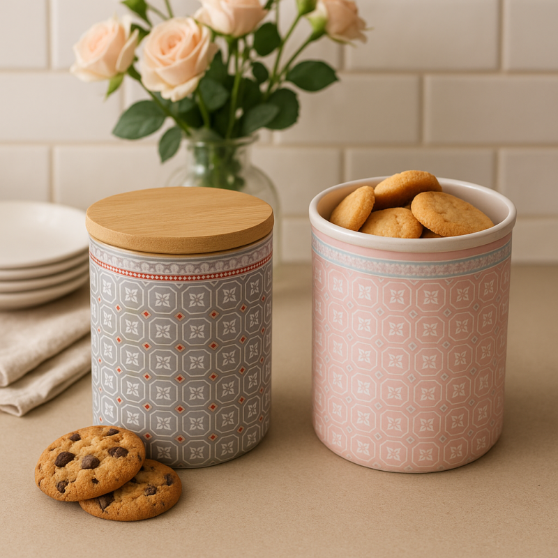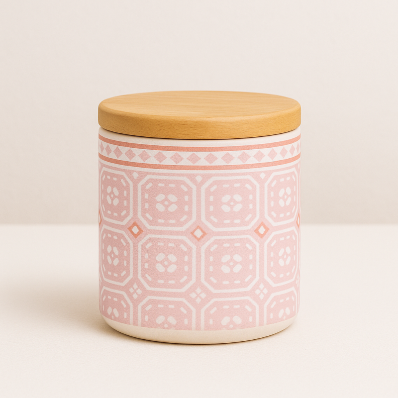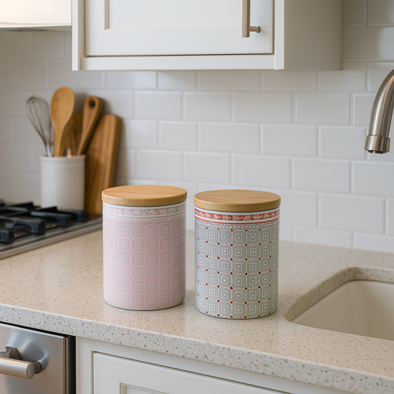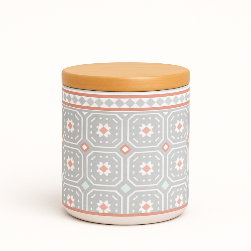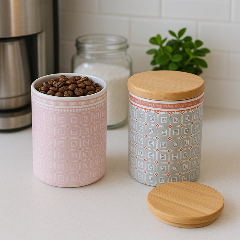 Буркан порцелан Винтидж с бамбуков капак е практично и стилно допълнение за всяка кухня.