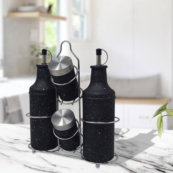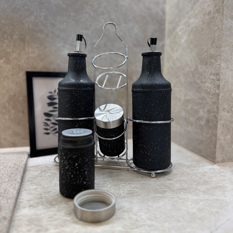 Създаден за практичност и стилно сервиране на олио, оцет, сол и други подправки.