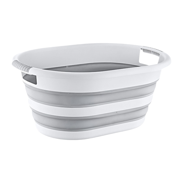 Той е достатъчно голям, за да събере цялото ви пране, но след като го сгънете, лесно може да го мушнете между пералнята и стената.