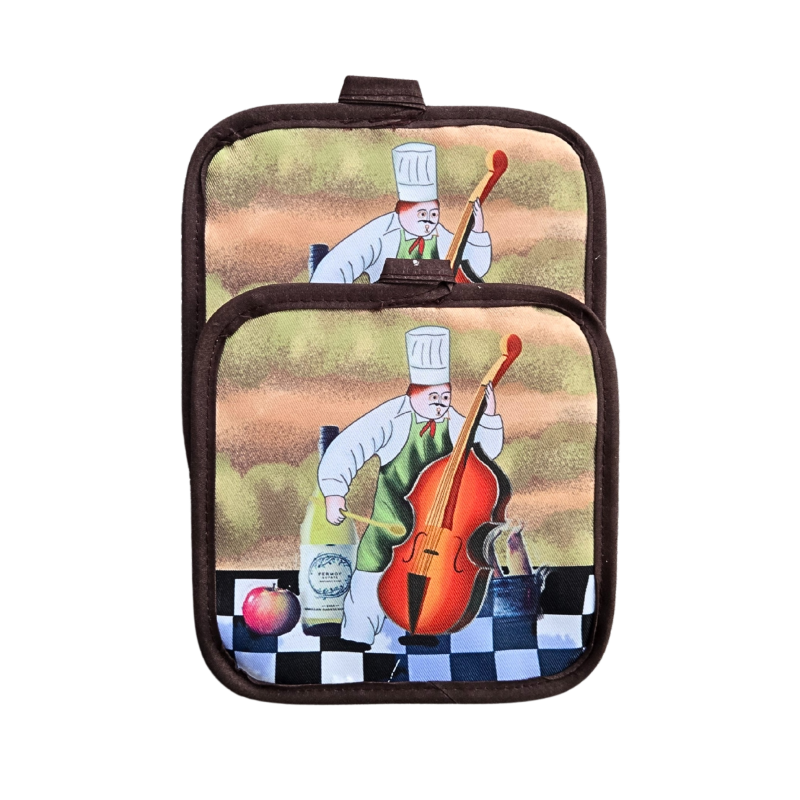 Добавете стил и сигурност при готвене с този комплект от 2 кухненски ръкохватки, изработени от 100% памук.